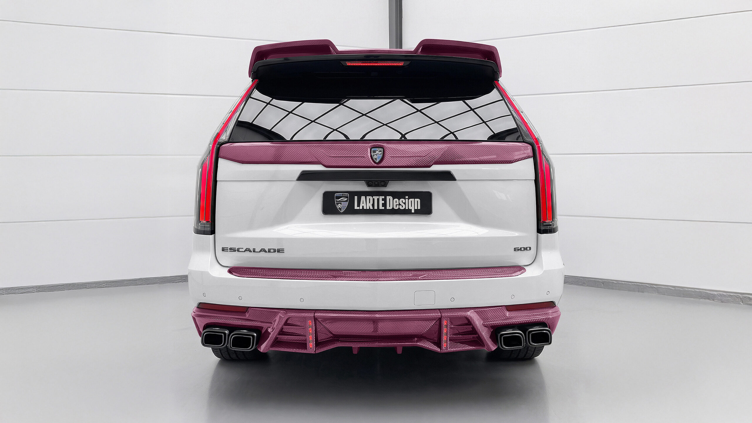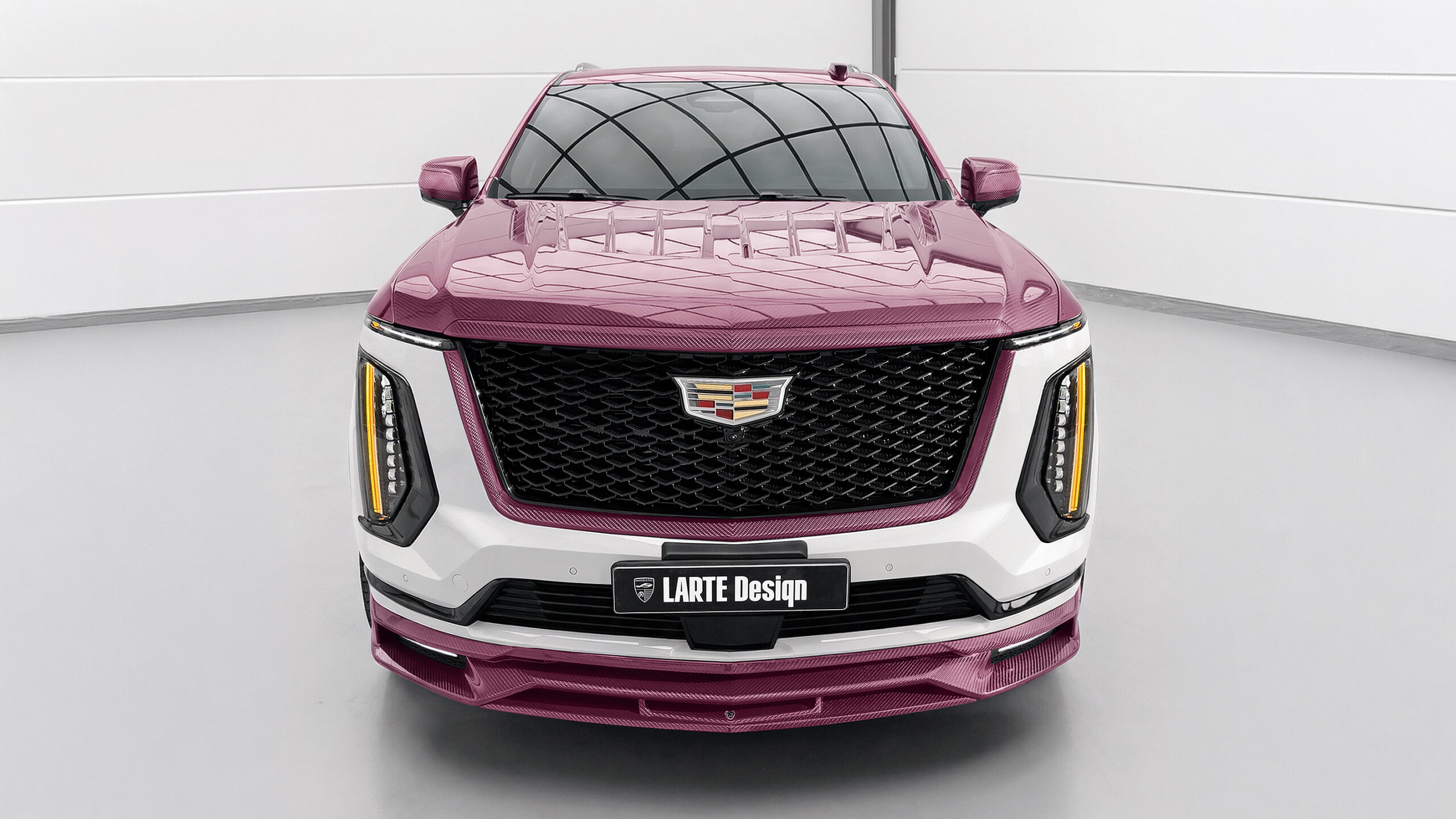 LARTE Design представила своє нове бачення Cadillac Escalade (2024–2026), створене на основі кузова ESTHETE. Цей автомобіль відразу привертає увагу завдяки білому кольору, поєднаному з рожевими елементами з карбону, що надає повнорозмірному SUV унікального вигляду.